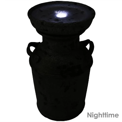 Sunnydaze Decor Sunnydaze 20″H Electric Polystone Farmhouse Vintage Milk Can Birdbath Outdoor Water Fountain With LED Lights