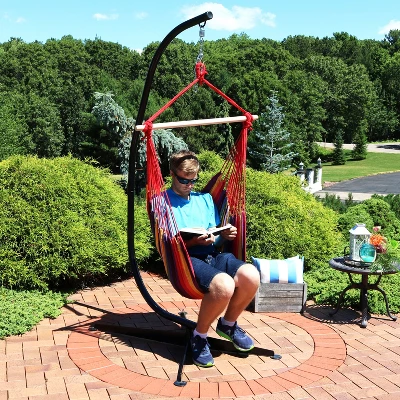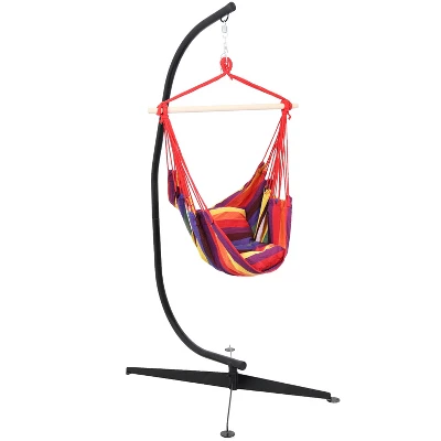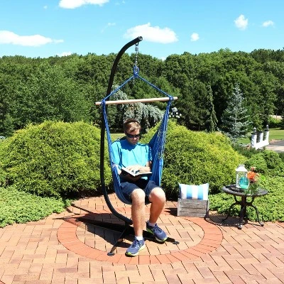 Sunnydaze Decor Sunnydaze Double Cushion Hanging Rope Hammock Chair Swing With C-Stand – 265 Lb. Weight Capacity