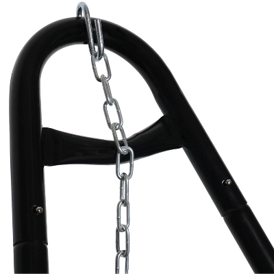Relax and enjoy the outdoors on your patio, deck, in your garden or yard, or enjoy easy living indoors in your living room, bedroom, or sunroom with this steel, universal, multi-use hammock stand. Featuring a versatile A-frame design and ultra-durable powder coated steel construction, this hammock stand is sure to be your favorite! The materials make this stand strong, durable, and weather-resistant, making it the perfect hammock stand to place outside. Similarly, this one hammock stand can suit all of your hammock needs! Whether you have a Mayan hammock, Brazilian hammock, camping hammock or a spreader bar hammock, this stand will do the trick. To fit this stand, your hammock can range from 9.5 feet to 14 feet long. The stand features a sturdy 1.5-inch powder coated steel tube frame for resistance to rust, as well as adjustable chains and s-hooks so you can adjust the stand to fit any of your favorite hammocks.