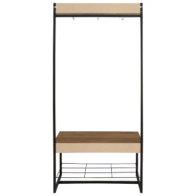 - Dimensions: 31.5″ W x 14.5″ D x 67″ H; weighs 20.8 lbs; overall weight capacity: 260 lbs; bench weight capacity: 220 lbs; shelf capacity: 20 lbs; shoe rack capacity: 20 lbs; hook capacity: 5 lbs (per hook)