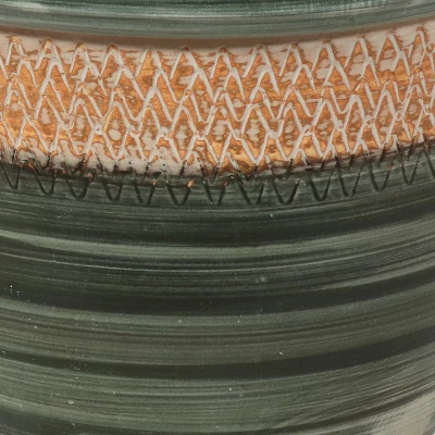 Display vibrant flowers, luscious greenery, fresh vegetables, or any other kind of plant and add a vibrant, decorative touch to the porch, patio, yard, or living room with this beautiful, round ceramic planter. Set the planter on the front step, porch, or place it on a plant stand (stand not included) in the living room or kitchen. Designed for indoor and outdoor use, this planter can be used to grow flowers, greenery, or herbs anywhere. This planter pot is made from durable ceramic clay with a shiny, mineral glaze finish for added resistance to the elements and long-lasting beauty. This elegant large indoor planter features rich color and a unique etched design around the top of the planter. This ceramic planter has three 1″ drainage holes in the bottom to allow excess water to drain out. Be sure to always use a saucer (saucer not included) beneath the planter when placing it indoors to avoid spilling excess water on the floor.
