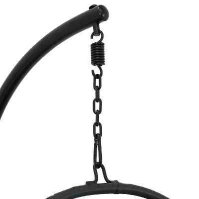 Relax on the patio or balcony in style while sitting on the Dalia hanging egg chair with cushions from Sunnydaze Decor. This chair features a durable construction with a steel frame wrapped in weather-resistant polyethylene rattan and a nylon rope chair back. This chair is strong and sturdy, but it is also built for comfort and relaxation with a comfy headrest and soft, all-in-one seat, back, and arm cushion. The headrest pillow is easily tied to the frame of the chair using the attached fabric ties, and the cushion features zippers to simply remove the inner cushion for easy cleaning. The rattan wicker construction is also smooth to the touch so you will not have to worry about splinters. A safety strap is included to connect the chair to a stand to help keep the chair safely in place while getting in and out of the chair (stand is not included). Please note, a stand is not included with purchase.
