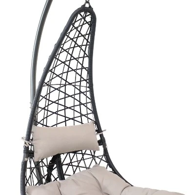 Have a stylish place to sit back, relax, read, and enjoy your outdoor space with the Phoebe hanging chair with included cushions and a sturdy, steel stand. This outdoor lounge chair is constructed with a steel frame wrapped in resin rattan that replicates the look of traditional wicker but will stay smooth to the touch. The durable resin material will also be resistant to most weather conditions like rain, snow, and sun. This hanging lounge chair won’t splinter or fray easily! Further, the polyester cushions are soft, stylish, and easy to maintain and clean with their weather-resistant material. Unwind in confidence knowing that the chair is hanging from a strong and resilient steel stand. This product includes 1 hanging chair, 1 headrest cushion, 1 seat cushion, 1 stand, and 1 hanging chain. Enjoy the comfort and style of this versatile chair and stand on the patio, porch, deck, balcony and any other outdoor living space where extra seating is needed.