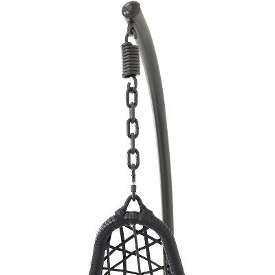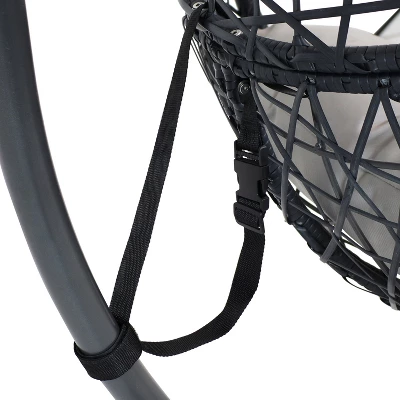 • WON’T FRAY OR SPLINTER: The chair’s strong metal frame is wrapped in gray-colored weather-resistant polyethylene rattan that replicates the traditional look of class wicker, but has modern durability. The heavy-duty gray stand is constructed from resilient steel that provides a reliable frame for the chair to hang from. The cozy cushions are made of soft and easy-to-clean polyester fabric with a plush polyester core.