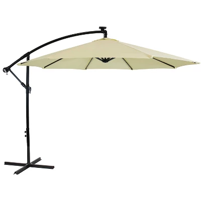 Sunnydaze Decor Sunnydaze Outdoor Steel Cantilever Offset Patio Umbrella With Solar LED Lights, Air Vent, Crank, And Base – 9′